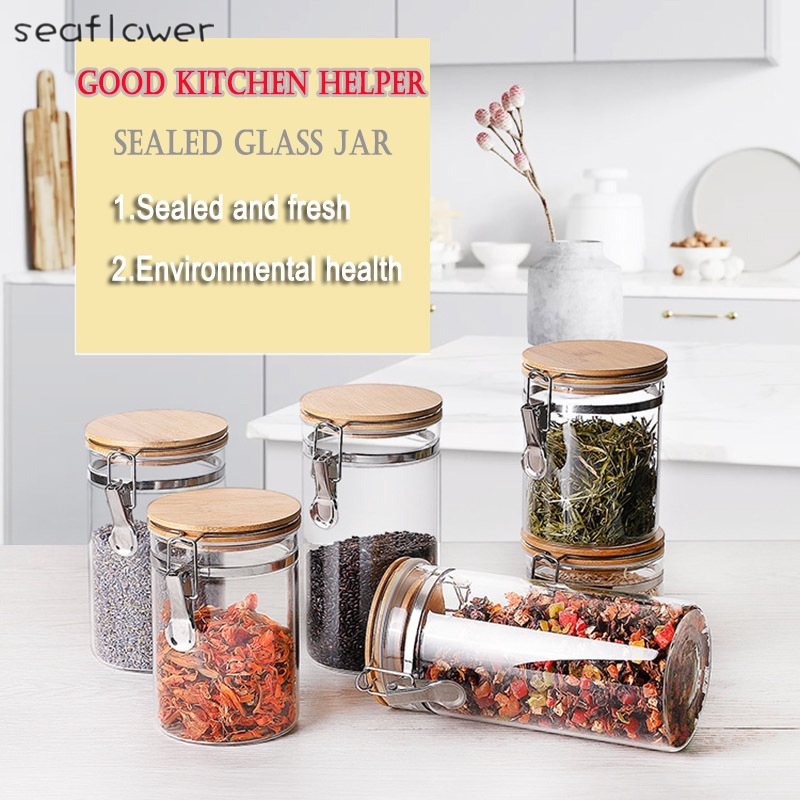 Food Storage Jar Glass Food Storage Jar With Airtight Seal Bamboo Lid Snap Fit Glass Canister Shopee Indonesia