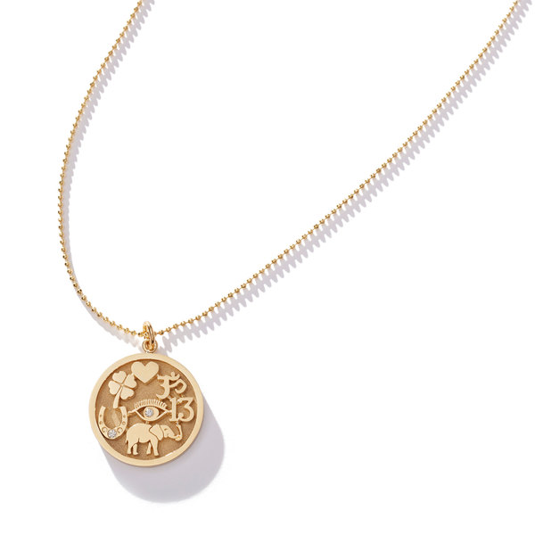 A timeless design that is iconic to our brand the charm is comprised of seven good luck symbols - an elephant evil eye with diamond detail Ohm horseshoe with diamond detail four leaf clover and a heart - a wear-forever piece to bring you good fortune. 14K and 18K yellow gold Jennifer Meyer beaded necklace featuring good luck pendant with 002 carats of round brilliant diamonds with spring ring closure. Ad Korean style fashion accessories online store.