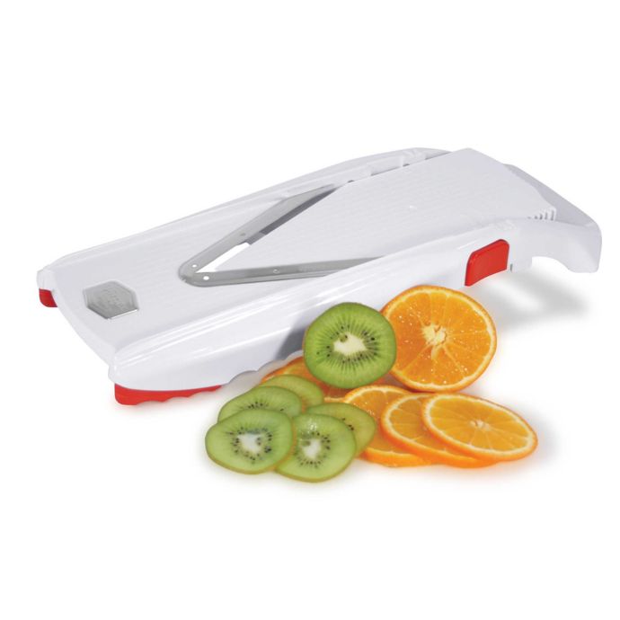 7mm and 35mm blade inserts that slice julienne shred and. The ultimate mandoline the innovative VPower V-Slicer. This slicer uses surgical-grade stainless steel blades to perform a wide variety of cuts and is compact for easy storage.