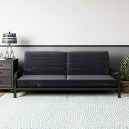 It includes a 6 futon mattress and easily converts from sitting to sleeping Center legs provide added support and stability and two mattress retainer clips to hold the mattress in place Available in black grey or blue Assembles quickly and. Mainstays Connectrix Faux Leather Futon Multiple Colors with Mainstays Faux Sisal Area Rugs or Runner Bundle. The Mainstays Black Metal Arm Futon with a 6 Mattress offers the best of both worlds.