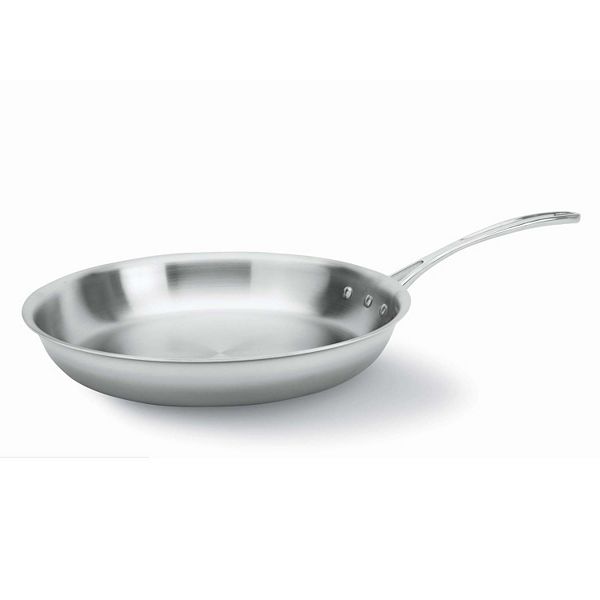 Cuisinart 722-30G Chefs Classic 12-Inch Skillet with Glass Cover 46 out of 5 stars 1447. Tri-Ply stainless is designed with two layers of stainless steel and an aluminum core for excellent heat conductivity ensuring even and consistent heating on all types of cook tops. The Calphalon Signature Stainless Steel 12-inch Omelette Pan is dishwasher safe for easy cleaning although hand washing using a liquid detergent and non-abrasive sponge or soft bristle brush is recommended to preserve the luster of the stainless steel.
